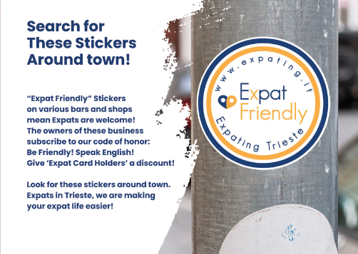 Look for these stickers around town. Expats in Trieste – we are making your expat life easier!